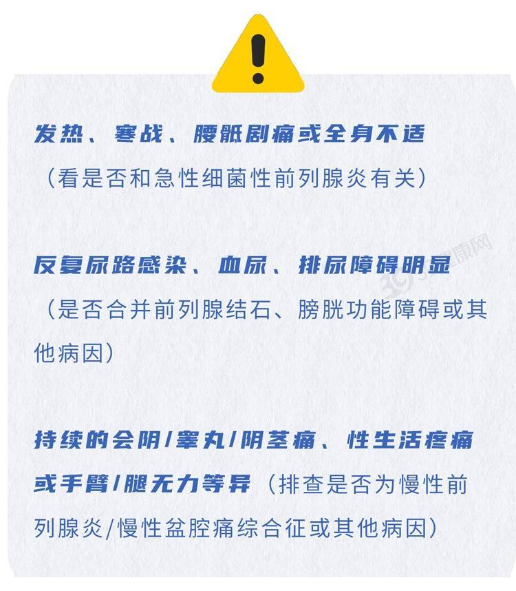 最后,九叔提醒大家,若出现以下症状,建议及时看泌尿外科,进行直肠指检或尿常规与尿培养等相关检查,别等“起夜三五次”变成长期折磨才后悔。